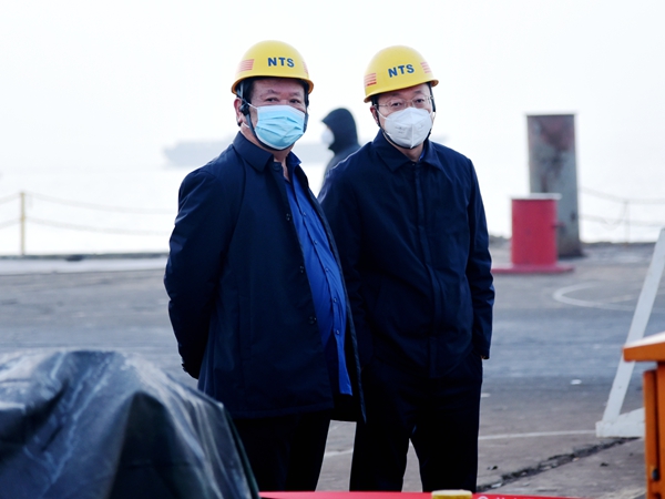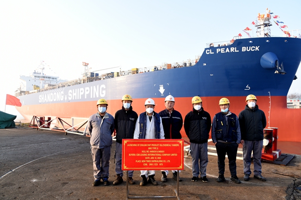 公司董事長袁凱飛、總經理劉海金、常務副總經理張玉永等公司領導與船東國銀租賃代表一起在現(xiàn)場觀看船舶下水。