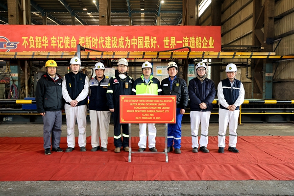 2月13日下午,公司在東區(qū)鋼加車間舉行船舶點火開工儀式,7#11400箱雙燃料動力集裝箱船船體結(jié)構件開始切割預制。