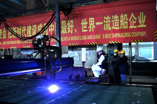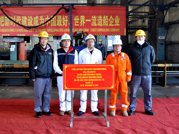 12月13日上午,公司在東區(qū)鋼加車間三跨舉行船舶開工點火儀式,7#8100箱雙燃料動力集裝箱船的船體結(jié)構(gòu)件開始預制。生產(chǎn)管理部等相關部門負責人與船東CONGLOMERATE MARITIME LIMITED代表出席活動。