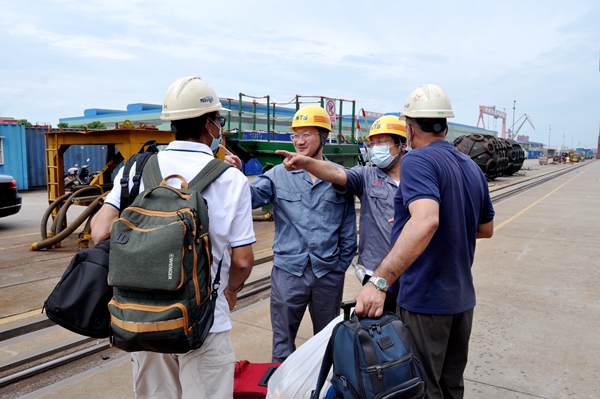 公司總經(jīng)理劉海金,常務副總經(jīng)理張玉永、總經(jīng)理助理徐震宇及各相關(guān)部門負責人一起到東區(qū)碼頭迎接試航團隊,向同志們道一聲“辛苦了”。