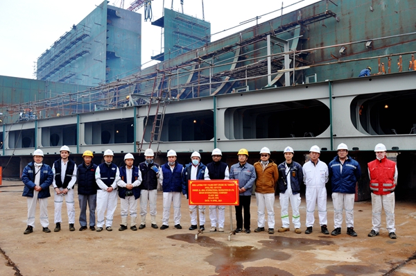 4月14日上午,公司在3#塢內(nèi)舉行船舶進(jìn)塢合攏儀式,9#10#111000噸油船船體搭載工作正式啟動。常務(wù)副總經(jīng)理張玉永、總經(jīng)理助理丁柏英與船東沙特阿拉伯BIHAR公司代表、ABS船級社代表等共同出席活動,灑香檳、放鞭炮,祝愿船舶建造工作順利開展。