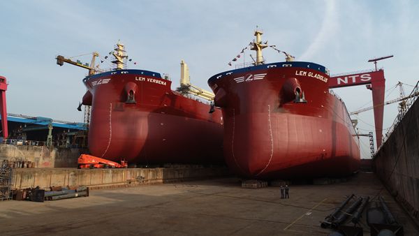 搶時間提速度 兩艘65000噸散貨船同日下水