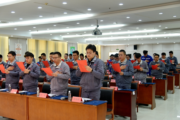 活動中,劉海金、周燦榮為青年人才培訓班銘牌揭牌。48名學員立下錚錚誓言:作為一名青年人才培訓班學員,將充分利用培訓機會,努力提升自身思想素質(zhì)、專業(yè)技能和管理水平;嚴格遵守培訓老師的教導和要求,積極參與討論和學習活動;學以致用,為企業(yè)的發(fā)展而努力奮斗,為建設(shè)百年新時代貢獻自己的力量。