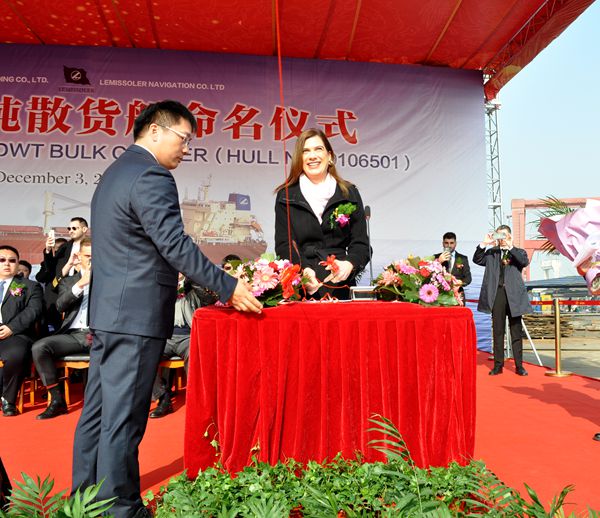 12月3日上午,公司舉行隆重命名交船儀式,1#65000噸散貨船正式交付船東。