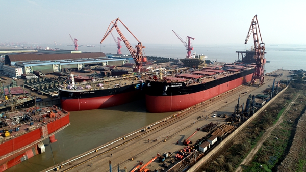 生產(chǎn)速遞:25#208000噸散貨船和26#110000噸油船相繼下水(圖)