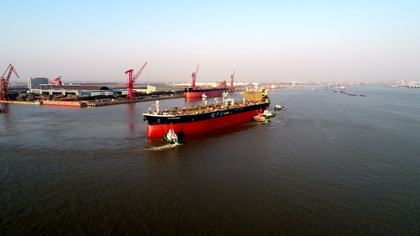 26#110000噸油船總長249.9米,兩柱間長245.2米,型寬44米,型深21.3米,設(shè)計吃水13.5米,結(jié)構(gòu)吃水15米,載重噸110200噸。船東公司Eastern Pacific Shipping Pte. Ltd.(EPS)在我們企業(yè)訂有4艘110000噸油輪和3艘210000噸散貨輪,此次下水的是110000噸油輪系列船中的第二艘。