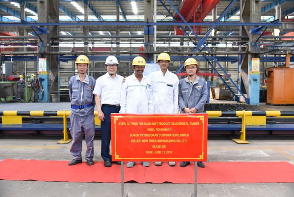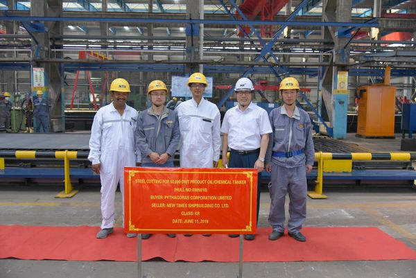 6月11日,10#11#50000噸油船正式開工建造,公司副總經(jīng)理朱韓鋼、總經(jīng)理助理徐震宇與船東代表一起出席儀式。