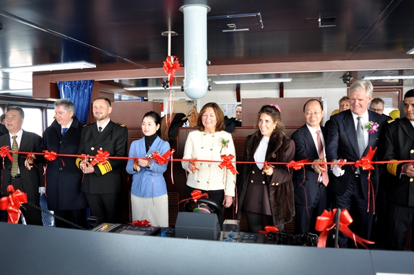 總經(jīng)理劉海金、常務(wù)副總經(jīng)理張玉永、副總經(jīng)理袁衡、總經(jīng)理助理徐震宇等公司領(lǐng)導(dǎo)與船東喜馬拉雅航運(yùn)公司總裁Tor Olav Trøim、39#船教母Berit Hauge、40#船教母Cristina Villarreal Fraile、41#船教母Mina Iizawa、江蘇金租董事長(zhǎng)熊先根、建信金租副總裁安志成、中國銀行天津市分行副行長(zhǎng)張屹東、中國銀行江蘇省分行副行長(zhǎng)江東、SeaQuest執(zhí)行總裁Jan Andersson、美國船級(jí)社挪威分部商務(wù)經(jīng)理Egil Egland等嘉賓出席活動(dòng)。