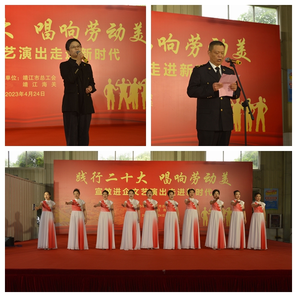 習近平總書記多次深情寄語,希望廣大勞動群眾一定要倍加珍惜、倍加努力,在勞動中體現(xiàn)價值、展現(xiàn)風采、感受快樂,以勞動托起中國夢。為深入學習宣傳貫徹黨的二十大精神,大力推進工會文化和企業(yè)文化建設,豐富職工業(yè)余文化生活,進一步激發(fā)廣大職工愛黨愛國情懷,不斷增強職工凝聚力和向心力,在五一國際勞動節(jié)來臨之際,靖江市總工會聯(lián)合靖江海關首場“踐行二十大 唱響勞動美”主題宣教走進了我們新時代造船,用職工群眾喜聞樂見的文藝形式,唱響主旋律,謳歌新時代,推動黨的二十大精神進企業(yè)進班組,走進職工心窩,共同唱響勞動美的號角和奮斗的旋律!