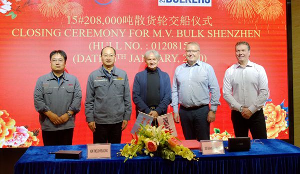 1月6日上午和下午,公司分別舉行簽字交船儀式,兩艘208000噸散貨船先后成功交付船東,分別是3#、15#208000噸散貨船,企業(yè)生產經營開局喜人,新年首月就實現(xiàn)了交船“開門紅”。